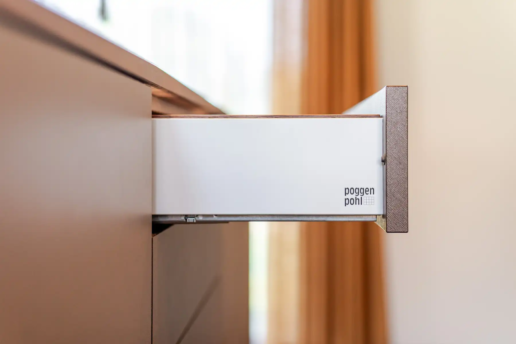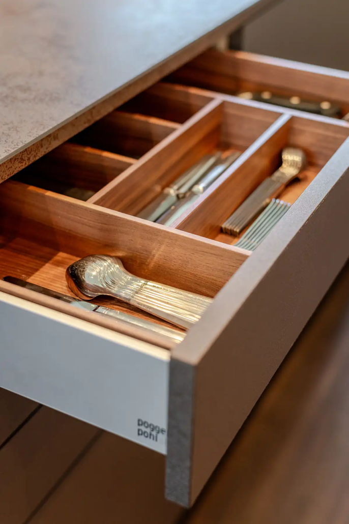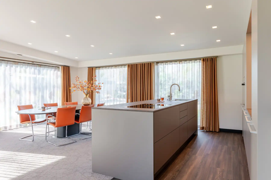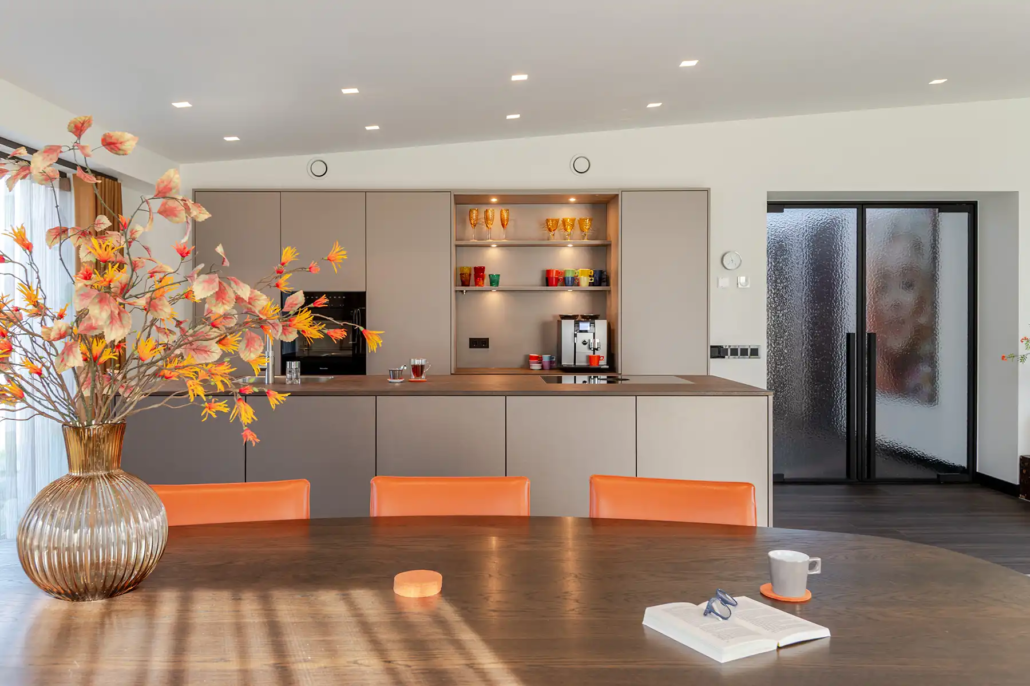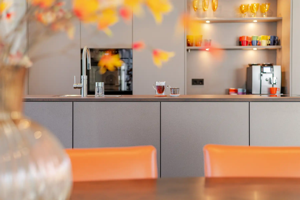 Waar veel keukens worden bepaald door trends, kozen Jos en Els bewust hun eigen koers. “We merken dat je in veel zaken gestuurd wordt naar wat op dat moment populair is, maar wij willen juist iets dat bij ons past.” Die aanpak sluit aan bij de werkwijze van Poggenpohl Den Bosch. “Zij geven je de ruimte om buiten die trends te denken. In ons vorige huis hadden we bijvoorbeeld een metallic-oranje keuken, terwijl dat helemaal niet gangbaar was. Ook nu hebben we gekozen voor een sfeer en kleur die bij ons en ons huis passen.”