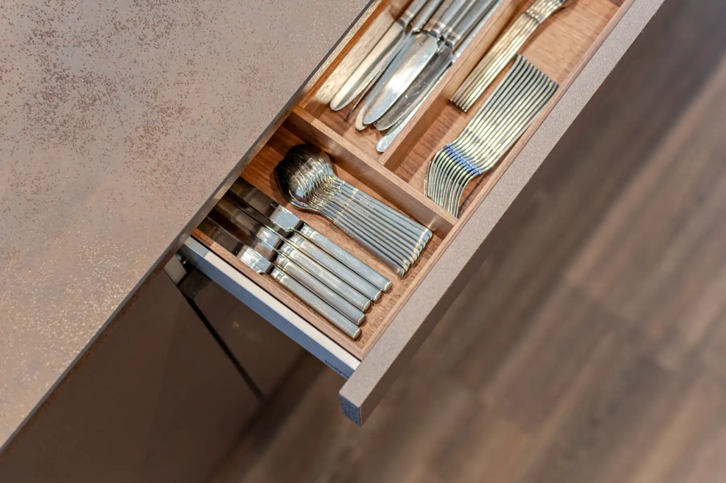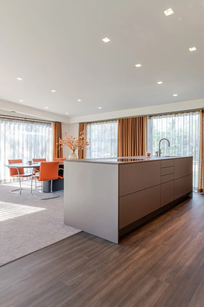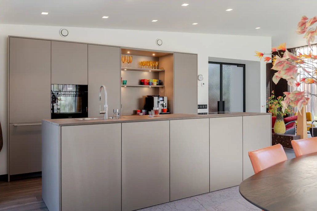 Naast uitstraling speelde gebruiksgemak een grote rol. “De keuken is strak en vooral functioneel”, vertelt Jos. “Alles zit erop en eraan en werkt zoals wij dat willen.” Moderne oplossingen maken het dagelijks gebruik prettig. “Denk aan elektrische lades, een stoomoven en een kookplaat met geïntegreerde afzuiging. Dat zijn echt dingen van nu.” Tegelijkertijd blijft duurzaamheid belangrijk. “We wilden geen keuken waar we over een paar jaar op uitgekeken zijn, maar iets waar we over tien jaar nog steeds blij mee zijn.”