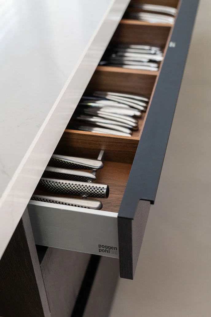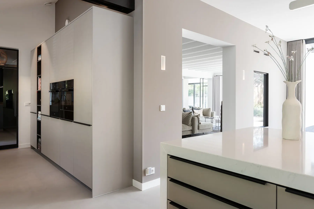 De plaatsing van de Poggenpohl keuken maakte indruk. “Waar de rest van de bouw chaos creëerde, gingen de monteurs van Poggenpohl aan het werk alsof ze een operatie uitvoerden. Alles lag netjes geordend, elk schroefje op een rij. Na twee dagen stond de keuken er perfect in en was alles opgeruimd. Je zag dat ze dit met heel veel liefde en precisie deden. Dat vond ik heel bijzonder.”