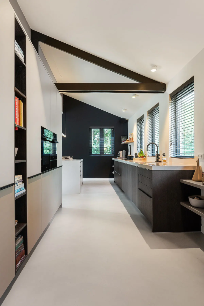 Ook over de kleurkeuzes is ze enthousiast: “Het zwart is een warme tint, meer bruinzwart. Dat komt weer mooi samen met de kozijnen en schuifpuien. Het hele huis sluit qua sfeer op elkaar aan.”