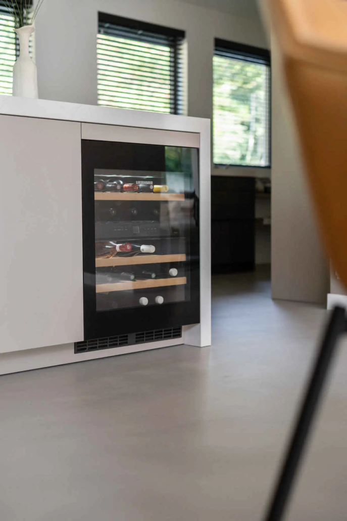 Thijs had één duidelijke wens: een wijnklimaatkast. “Die zit er natuurlijk in”, lacht Isabelle. Zelf liet ze zich adviseren over de rest. “We hebben twee ovens, waarvan één een stoomoven. In onze vorige keuken heb ik die nauwelijks gebruikt, maar na een cursus bij het Miele Experience Center gebruiken we hem nu heel veel. Dat kan ik echt iedereen aanraden.”